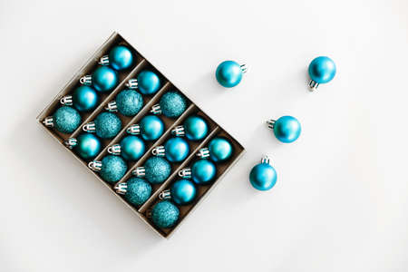 christmas composition. a pattern of christmas balls on colored background. Flat lay, top view New year decor.