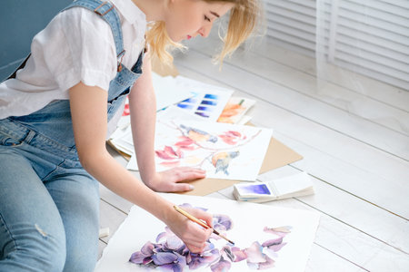 creative art lifestyle. drawing hobby and self expression. young beautiful girl painting a picture at home
