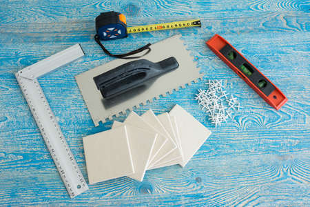 Tools for creativity and repair on a blue background. The concept of repair and construction.