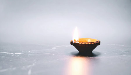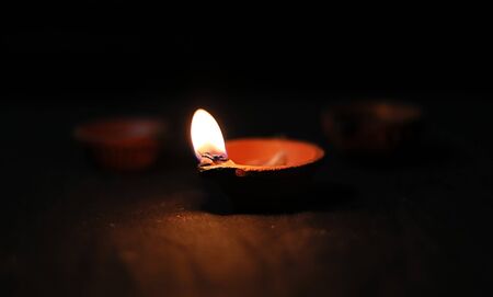 Diwali diya with blurry dark bokeh light background with copy space. Used selective focus.