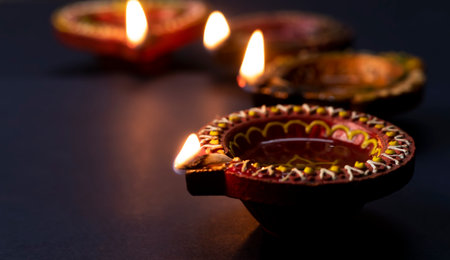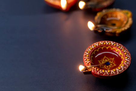 Happy Diwali celebration - Diya oil lamps on dark backgrounds