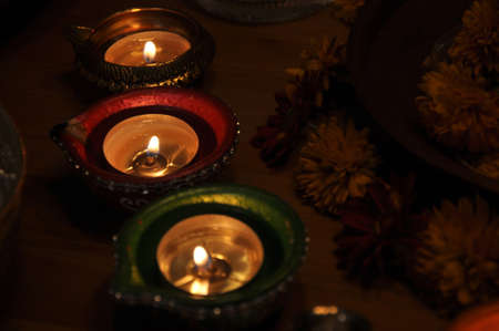 Diwali lights with diyas oil lamps