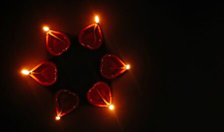 Diwali lights with Red diyas oil lamp on black background
