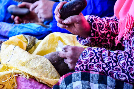 Unidentified Togolese women in traditional clothing. Togo people suffer of poverty due to the bad economy
