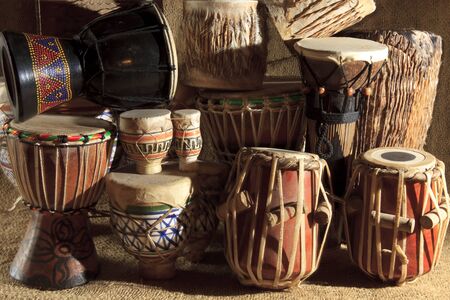 Traditional djembe drums in the Sahara desert, Morocco, Africa