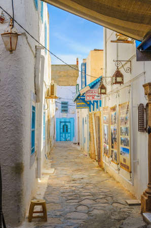 HAMMAMET, TUNISIA - Oct 2014: Narrow street of Medina on October 6, 2014 in Hammamet, Tunisia
