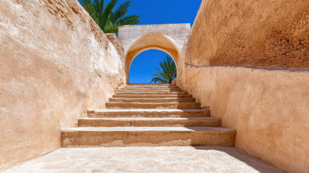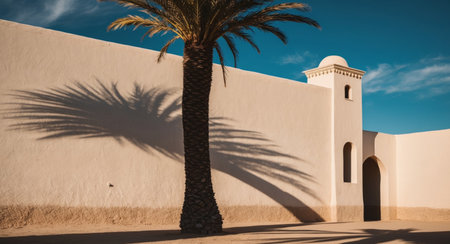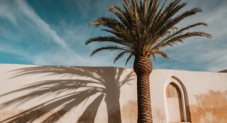 AI Generated. Palm Tree Shadow on a Desert Wall with an Archway