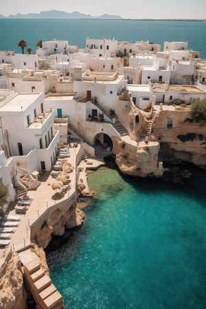 Generative AI : Aerial view of Ostuni old town the white town near Brindisi Puglia Italy