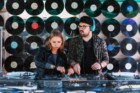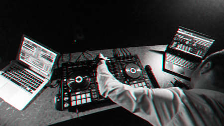 Dj mixing sound music in house recording studio - Youth deejay lifestyle entertainment concept