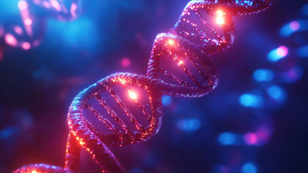 close-up of dna strand in vibrant blue and pink, depicting advanced genetic research and biotechnology