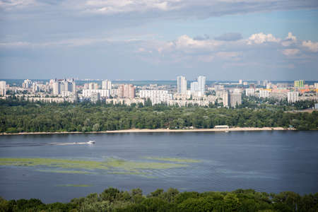 Panoramic view of the city of Kiev with the Dnieper River on the left bank. Aerial view