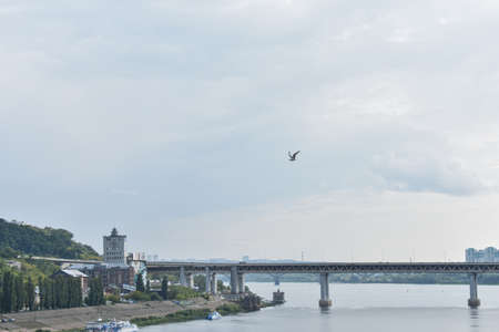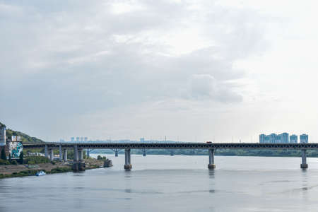 View of Dnieper river and Metro bridge in Kiev, Ukraine