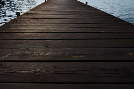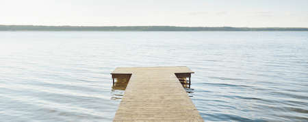 Wooden pier on the lake in the morning. Nature background.