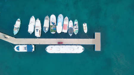 Aerial view on the harbor with boats and yachts. Beautiful composition with sea transport