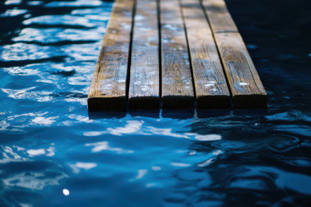 empty wooden pier and blue water at sunny day