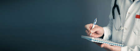 Doctor writing patient notes on a medical examination or prescription