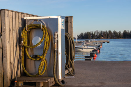 Sewage treatment for waste from leisure boats. Septic, pump-out station for waste, black water tank, discharge of holding tank in a marine, harbor facility in Finland, Baltic sea to keep the water clean