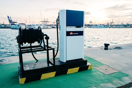 Valencia, Spain - November 1, 2019: Repsol is the main oil company in Spain, and provides diesel to the ships of the port of Valencia.
