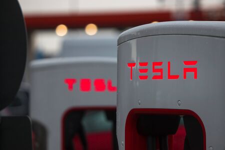 wilnsdorf, North Rhine-Westphalia/germany - 14 01 2020: tesla car supercharger in wilnsdorf germany