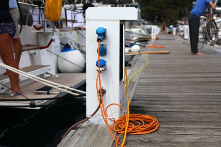 Electro plug socket at a harbor electricity for yacht ships