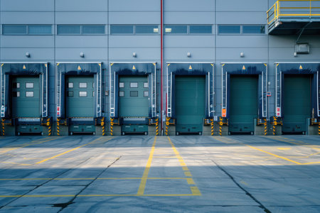 Large modern distribution warehouse with cargo doors freight