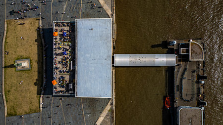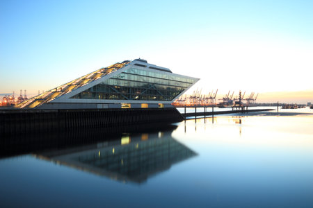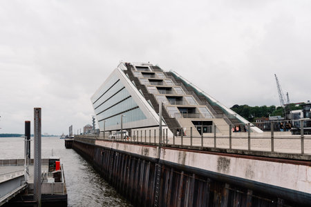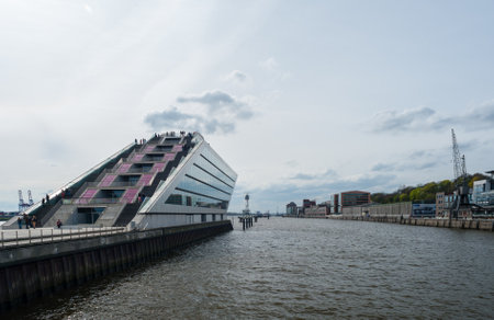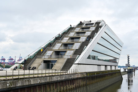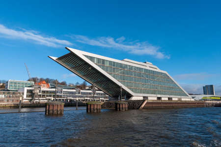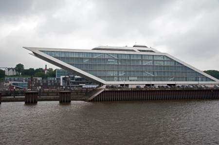 Dockland in Hamburg is an office building with ship-like architecture in Altona at the port of Hamburg. On the accessible roof terrace, which visitors reach via 140 steps, there is a wonderful view over part of the Hamburg harbor from the viewing platform