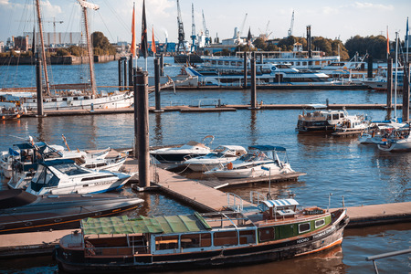 HAMBURG, GERMANY - CIRCA MAY 2017: Hamburger Hafen (Port of Hamburg) sea port on the river Elbe
