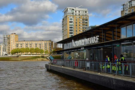 London; England - October 21 2021: the canary wharf pier in the Thames riverside