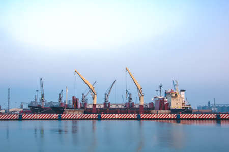 Container terminal and shipyard at sunset, Odessa, Ukraine.