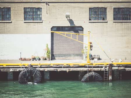 Old wooden pier. Many yachts and boats are moored at the pier. Boating and rest on the yacht. Vacation at sea. Selective focus.