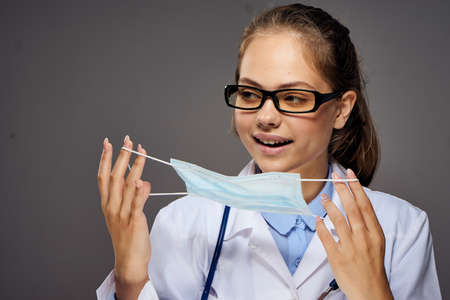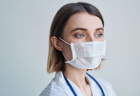 Professional doctor nurse in a gown with a stethoscope and a medical mask