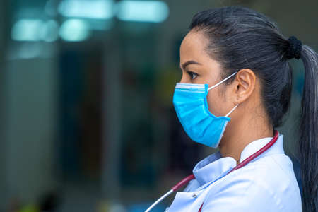 Female doctor wearing protective mask to Protect Against Covid-19,Health care worker in hospital diagnosing patients.