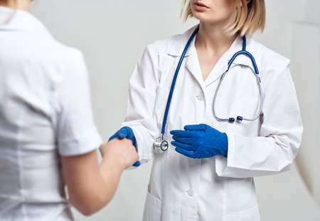 Doctor shakes hands with a patient in hospital.healthcare and medicine