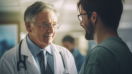 Doctor Talking with Friend and Smile Man