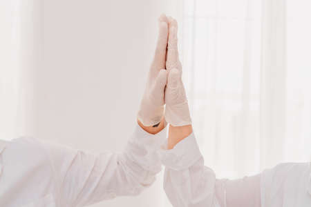 Medical doctors team wearing protective gloves and mask for protect the virus Covid-19, medical mask, hospital, quarantine outbreak concept