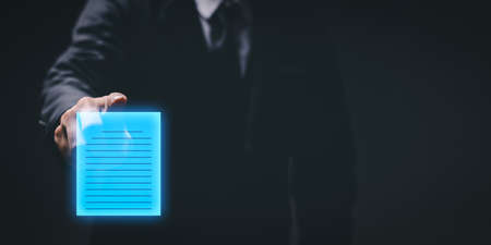 business internet technology concept enterprise information management system DMS.Businessman holding document icon in hand. Document Management Information.
