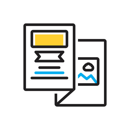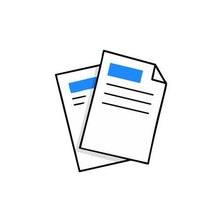 This vector shows two overlapping documents with blue header bars and black outlines on a white background, conveying organization and clarity. Clean and simple.