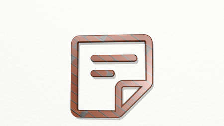 notes paper text made by 3D illustration of a shiny metallic sculpture on a wall with light background. business and music
