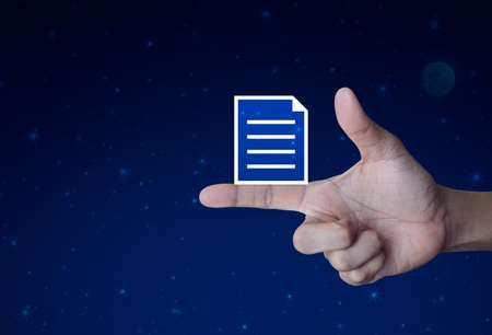 Document icon on finger over fantasy night sky and moon, Business communication concept