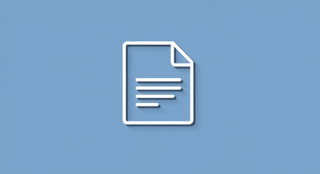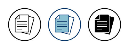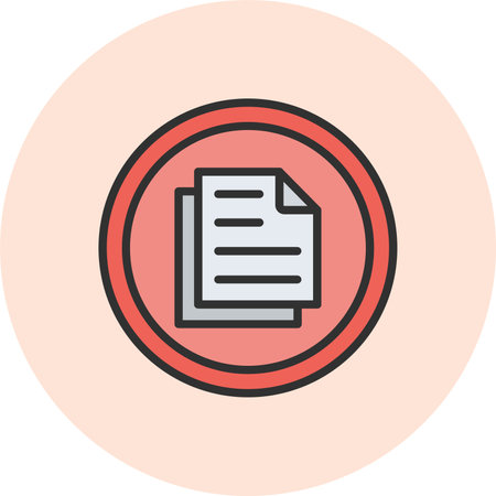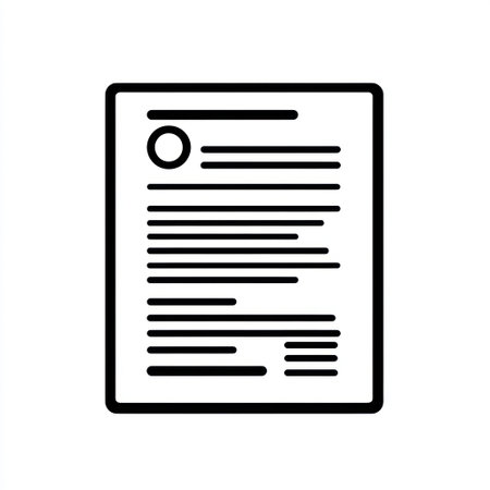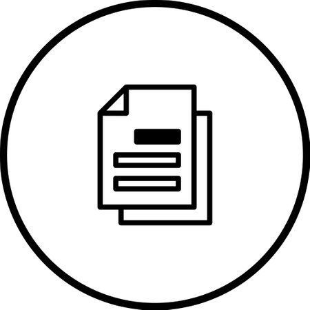 A minimalist document icon features a stack of papers with text, enclosed in a circular frame. Simple outline style suitable for modern web design and user interfaces.