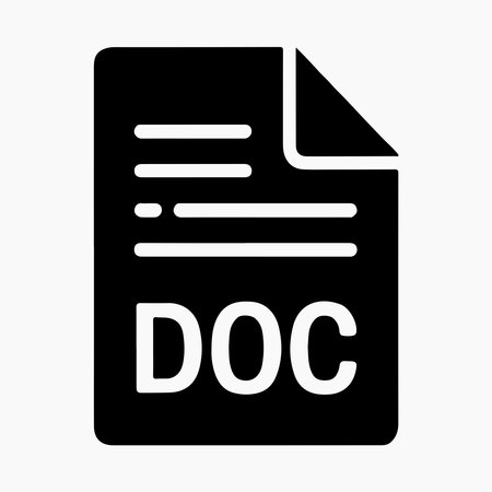 DOC file solid icon representing document format, office files, word processing, business reports and digital workplace design themes