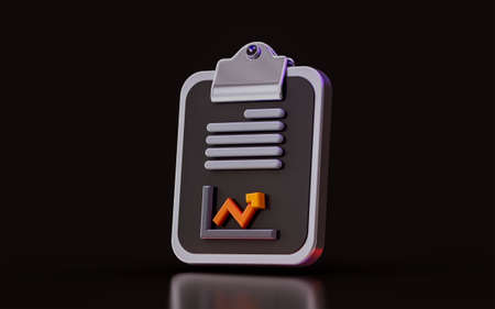 business charts with clipboard on dark background 3d illustration info-graphic element design graph