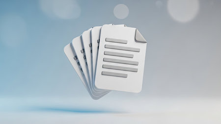 This illustration showcases a stack of documents with an abstract, soft-focus background. The documents are rendered in a clean, minimalist style, with soft lighting enhancing the three-dimensional effect. This image is suitable for various commercial uses, including website design, advertising, and presentations, providing a versatile visual asset.