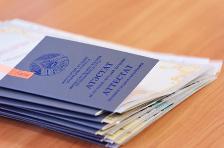 Stack of Student Academic Records and Transcripts on Wooden Table
