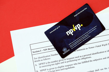 KYIV, UKRAINE - JANUARY 27, 2024 Indonesia NPWP new tax id Number card originally called Nomor Pokok Wajib Pajak. Used to carry out transactions related to taxation for Indonesian taxpayers.