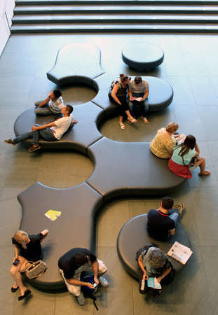 MOSCOW - MAY 1: People reading an interview at the Wim Wenders photography exhibition 'Pictures from the Surface of the Earth' at Multimedia Art Museum in Moscow, Russia, on May 1, 2012