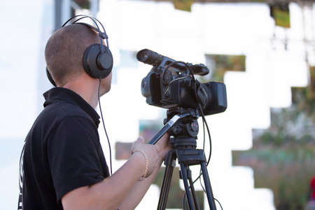 cameraman with headphones with HD camcorder