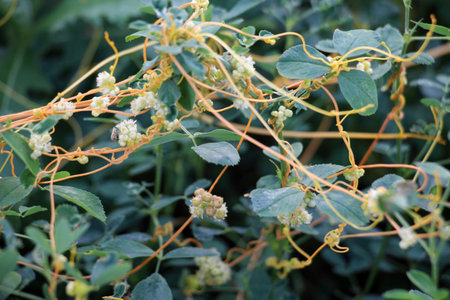 Dodder cuscuta parasitic plant choking the agricultural crops in the fields