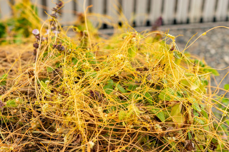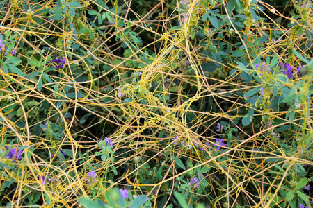 Dodder Genus Cuscuta is The parasite wraps the stems of plant cultures with yellow threads and sucks out the vital juice and nutrients