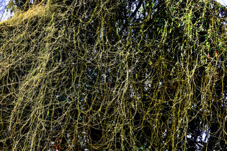 Cuscuta reflexa like yellow curly hair. This parasitic plant usually grows on other plants to become its host